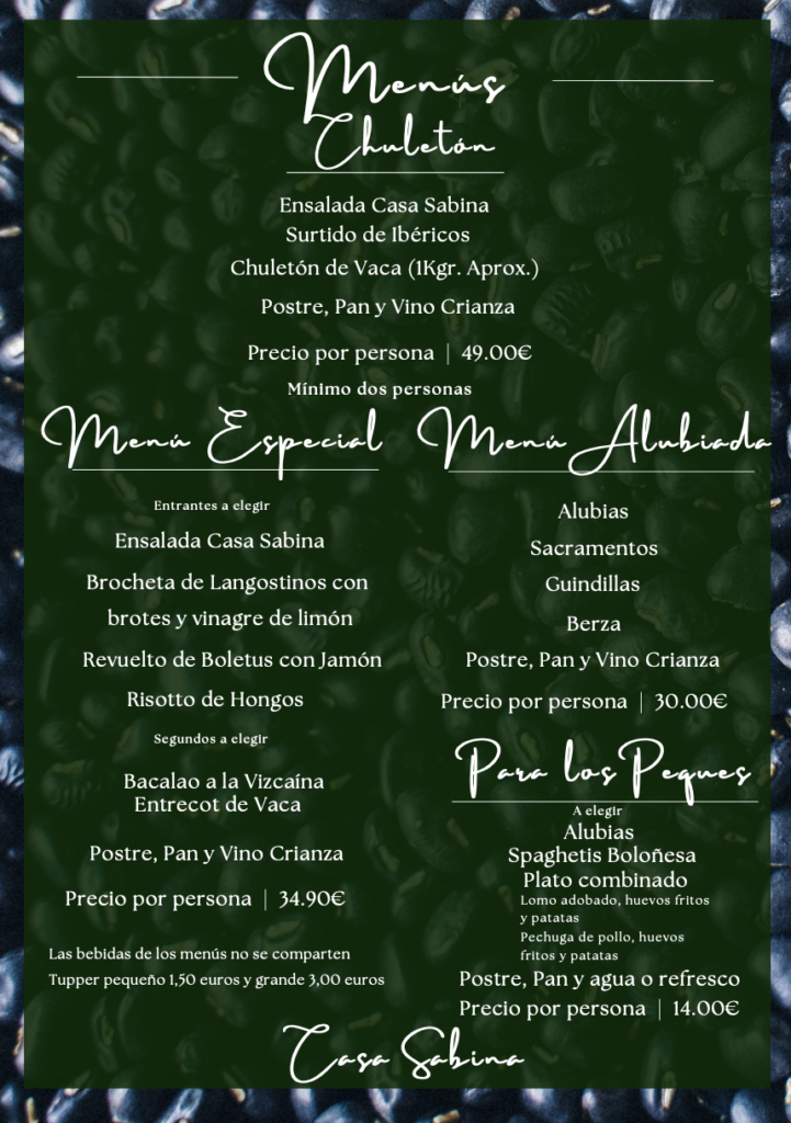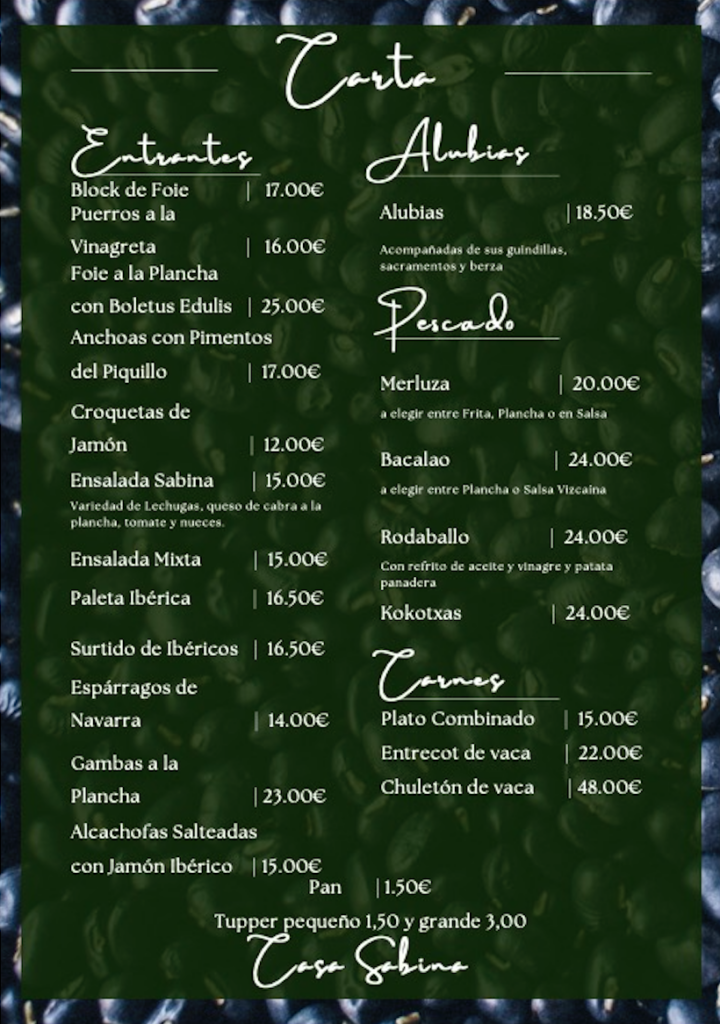 En Casa Sabina llevamos desde 1870 haciendo las mejores alubias a diario.